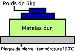 Nous avons placé un tatami à température ambiante (31℃) sur une plaque en pierre chauffée à 190℃ et mesuré le temps nécessaire pour que la température du tatami augmente de 10℃.